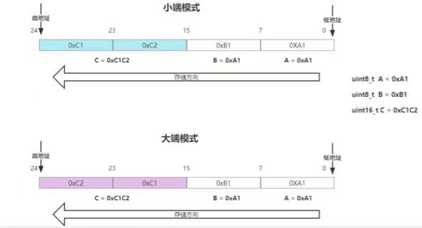 小端存C1C2,先将C2(低位)存在地址的低位,大端则相反,C2存放在地址的高位。