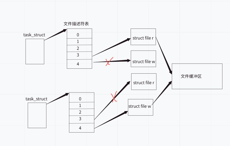 如图,父进程负责读,子进程负责写。